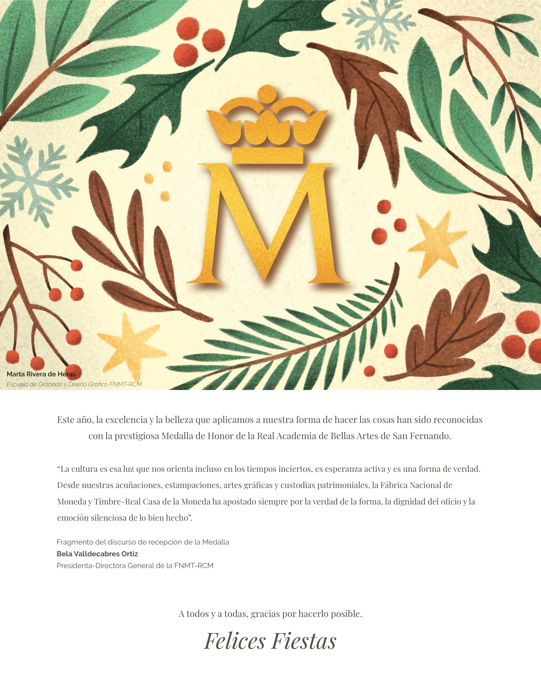 It includes the Christmas greeting created for The National Mint and Stamp Factory – Royal Mint (Madrid, Spain), which was used to celebrate the holiday season in December 2025.
